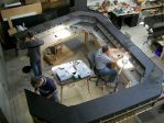 It got behind a little over getting the seats outsourced so it became 9 months start to finish ....I think we projected 6 or 7 months but , as in any project , there can be snags . The customer was getting a little impatient because Mark kept sending him progress pics and the guy was really excited . It would appear from my initial wording on the intro that Mark Williams is in one of the first pics but he is in the 16th pic only . Mark is a retired Ford Motor Co worker and a car guy ....had a 33 Ford street rod , Ford powered up until a few years ago that got snapped up by someone from Quebec shortly after he listed it . He's kind of into those little channeled Ford " Zipper " cars nowbut I don't think he has one yet .....also had a Porsche Boxter once etc .Very talented guy as are the rest of the crew . All are into model railroading .