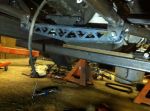 good looking floor and braces................does that trans crossmember have enough ground clearance, if you had a flat tire? Looks a bit low, but i am guessing how high the car may sit.............