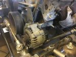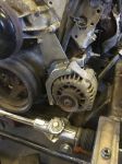 You can see in the last picture where I started to mount he alternator, I really liked low and out of the way. I had to mount as close the block as possible for clearance to the steering shaft. There are kits where can drill and tap the upper hole in the block but it was to close the steering shaft. So as with most of my stuff I designed my own brackets. 2 bolts from the waterpump and there is a hole on the side of the block to mount a bracket to. Measure, cut, weld, grind and make a spacer on the lathe, done.