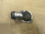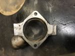 From T-stat to rad. It's shorter than the last sentence. After trying to find a couple of rad hoses that would go where I needed it to I gave up on rubber molded hoses and ordered up some bent aluminum tubing and silicone couplers. I rotated the outlet 45 degrees to better clear the intake tubing. mock up , cut, weld, done.