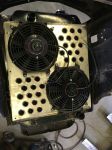 Got 2 10" cooling fans, made up mounting brackets and a shroud to mount the fans to. The shroud is stainless and the holes were all dimpled.