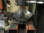 I'm making this car emission compliant, fortunately there isn't much on this engine but I do need a charcoal canister. Original bracket, toast. Made up a new bracket but it bolts to the frame from the back. I didn't want the bolt heads rubbing through the plastic can. I have wanted to try this for a while so I made a stamping die to recess the bolt area. Stuck it in the press and Voila recessed panel.