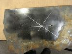 I'm making this car emission compliant, fortunately there isn't much on this engine but I do need a charcoal canister. Original bracket, toast. Made up a new bracket but it bolts to the frame from the back. I didn't want the bolt heads rubbing through the plastic can. I have wanted to try this for a while so I made a stamping die to recess the bolt area. Stuck it in the press and Voila recessed panel.