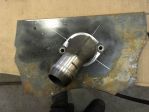 From T-stat to rad. It's shorter than the last sentence. After trying to find a couple of rad hoses that would go where I needed it to I gave up on rubber molded hoses and ordered up some bent aluminum tubing and silicone couplers. I rotated the outlet 45 degrees to better clear the intake tubing. mock up , cut, weld, done.