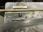 This is what I started with. A piece of 1" aluminum bar stock, nylon bushing material, 1/4" key stock, a small screw, short piece of 7/8" tubing, 1/2" bolt and jam nut and an old 1/4" drive socket.