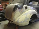 I shot a little bit of epoxy primer today. Was the body work worthy of primer? Nope. It looks like 100, 100 body work. 100 feet at 100kph. I given up hope of a shiny car. I really really dislike body work. I'm thoroughly convinced that bodymen must hate them selves.