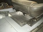Back to the drawing board. I designed a pull out drawer that would bolt to the seat tracks. Ordered some sliders from Amazon. Got the sheet metal out.