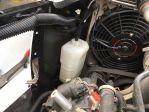 A trip to the wreckers netted me a few pieces including a coolant overflow jug. So convenient, I didn't even have to remove it. Found it lying on the ground next to car. A quick bracket, paint, mounted, done.