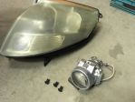 I have wondered what to do for some proper headlights ever since I started this project. The options are not very good. The buckets are excellent, trim rings really good, glass really good but the reflectors ok. After a bit of research I decided to go projectors. A trip to the wreckers scored a set of HID's from a 2004 Nissan Maxima. It was the only car in the yard with them. Got them home, one bulb and ballast toast. No big deal, aftermarket has me covered. I took them apart, only thing I really needed was the projector assembly.
