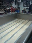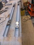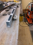 If you look closely. they are all screwed together right now. Once I am convinced it is all good I will weld that together. In this picture I needed to make sure the cross pieces are in the right location for the metal strips to be fastened down. Rusty strips for now, down the road they will turn into stainless steel and shiny.