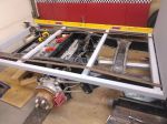 So part of the logistic challenges with this build has been the shop space. You can see what is suppose to be a really nice floor. It is called Race deck but is made of plastic. So I would like to keep it looking reasonable. So cutting and grinding are done outside and welding is done indoors but trying to keep plywood down over the floor. The shop was set up for woodworking and is full of those tools now. So very crowded, every flat surface now becomes a potential storage or working surface. Don't be shy folks if you see me doing something wrong. I am just guessing at most of this. Trying to learn as I go.