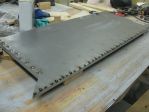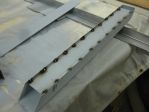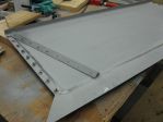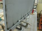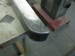 Next was on to the side panels. I bought some 16 ga. for that as well. Had it bent to the profile that was similar to the existing box. One difference here was the original had some filler panels attached to the bottom and I did not want to see the seams so had the panels made longer. Bought some tubing for the top roll. That is what others have done and looks good. Took a straight edge, well actually a piece of angle iron and clamped it to the tube and made a straight line on the tube. Took a grinder and scored a small groove in it and them flatted one side so the panel could sit in it and be straight. Does that make sense to you? Picture done not show well, sorry.