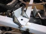 After the frame work for the box was built I needed to make up some brackets to hold it to the frame of the truck. Took some 3 x 3 angle that I have had for a long time. Took it from a job site years ago, not knowing what I would do with it but it was free and heavy. Welded them to the frame. Four were required as the truck had two for the front already and the back was different as shown in previous pictures