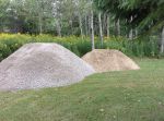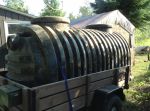 I guess better late than never.. Somehow I overlooked this post.. I am trying to be down there on the long week-end.. Not etched yet.. My Son-in-law has a skid steer we rented for the week-end to dig out the top soil and put some sand and gravel down for a place to park the trailer on a permanent place.. He will get it moved into it's place hopefully .. So if all goes well we should be there for the long week-end.. I am bringing down 150 ft of #6/2 wiring to wire the trailer.  I think we will just run it across the lawn untill we can get a small back hoe to dig a trench to bury a water line and the wiring. I think it's more important to dig a hole to set the septic tank in  to make sure we have a place to store old pizza's and other organic waste..I was lucky and found a septic tank in Brockville a used one , a big one that we should not need a weeping bed. we can just get it pumped every 4 years .it's 3400 literes.. I will try to get back in Octember to winterize it and wrap it for the winter. Next year I will build a deck and put a steel roof over it to protect the roof. Meanwhile My week-end work awaits..