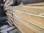 Got my bed wood into clear finish and started the install. 5 coats of gloss spar urethane thinned about 30% 4 coats applied with a cotton rag, light sanding to remove dust nibs, etc. and then a final coats. Smooth like glass. Needs to be completely bolted down but will not change the look from this. Really like the way the wood came to life after the finish was done.
