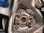 Was still having issues with my vacuum pump, brake booster system. Ordered up a new switch as that seems to be the problem (thanks to Lightspeed Mike for help figuring that out). Replaced it. It was now Monday afternoon and very happy with what I got done. Was fun to be back working on the truck. Off the stands and out for a test drive. Got about 2km into my test drive in a sub division around the corner from my place. Started, stopped going around corners, all good. Stopped, turned left and heard a big bang. Crap! now what. Stopped, looked but didn't see anything. Started going again and heard a thud and another and another, that's not good. Slow drive back to my place and up on stands it goes. This is what I found.