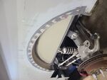 Cut the box. leaving the outside brace in place for now.. Test fit until it fits good. Looking through the cut out you can see the burned primer.