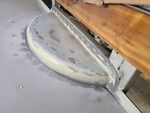 All welded up, ground down, some seam sealer installed, ready for another coat of epoxy primer.