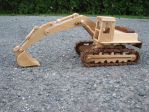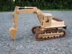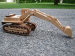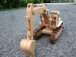 I thought the wooden truck drew some positive comments and stuff and I said I would post some more of the wooden stuff I have made. Here are some pictures of an excavator that I built a couple of years ago. It is make of maple and the dark wood is jatoba, I think. It was some left over wood from a previous project. The scale is the same as the truck and I have had the two on display at the same time. Currently they are in hiding, my wife does not like them that much. I would sell them if someone is interested. Same for the truck. Like the truck I have a set of drawings for them and went from there to add my own touches. The tracks were a bit tricky to make but turned out well. The whole track system moves on the wheels and boggy wheels. The hydraulics all move in and out as they are suppose to. The shinny part is stainless steel rod to make it look a bit more real.