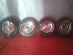 my buddy has these for sale, 15 by 8's and 10's, tires are decent, good tread no cracks, hes asking 300 im selling for him, I think they have all 4 caps, chrome has slight rust here and there but polish up good.