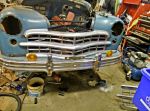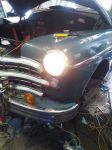 I took time to put the non damaged front grille on, and straighten out a dent in the headlight bucket area.