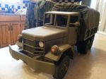 Thought I would share one more truck with you guys and gals. This one is very special to me. It was the first of the models that you have seen. I think I started showing the last one first and so now the first one last, go figure. This one is a bit of a departure from what I normally do. I made it out of pine and painted it. I would normally avoid soft woods as I prefer hardwoods to work with. It was painted with modeling paint. All in the same scale so it is about 15" long. The canvas cover was a piece of fabric that my wife sewed up for me. It is supported with old wire clothes hanger. Inside is all detailed as well but hard to take pictures of. After painting I took some alum. foil and glued that on the mirrors to make them look a bit more real. It is very special to me as I made this for my oldest son. It was given to him as a present when he completed his basic training in the military. It now has a prominent spot in his living room on top of the TV stand. He knew I was making it but thought I was doing it as a challenge to myself and it would stay with me. If you look closely at the last picture looking into the back of the truck you will see a bit of the racking that sits on top of the box sides. In real life you can take the cover off and load the truck full of stuff and then the cover goes back on. You can also drive it without the cover. Colouring is off in the first picture as these were taken with a phone camera so not as good a quality.