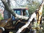 it was a stupid thing to be doing, obviously. i picked away at a couple of dead 6-7" limbs and thought 1 more about 10" but when i heard the snap i knew it was way more than the 1 i was picking on. luckily it slid down the boom into the cab and not direct on top, i think. they have a r.o.p. cab but the damage would of been a lot more $$$. the only injury was my ego for being so stupid and lazy for not roping it off and pulling from a distance.