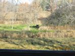 usually its up by 5 ish take your hangover medicine of choice and in our stands by 6 ish and wait. back to the house by 9-9;30 if no shooting and repeat again about 4 in the afternoon after a hearty meal and a big nap. yesterday was the same but after our brekky right out the back off the deck at about 75 to a 100 yds here is the scene. 2 good sized doe's and a 8 or 10 pt buck. didn't get the camera in time for the buck but here is his 2 dates.