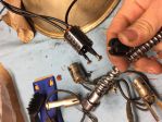 Wired up the headlights - not using the aftermarket stuff. it's crap. I just wired up bullet connectors on the new pigtails and the harness. One of the conduit tubes blew apart anyways just trying to feed the wire harness through it so forget those things.