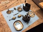 One thing I'm not sure about is there's a horizontal shaft that is driven by the main shaft and it drives the numbers. It has bronze bushings on either side - they popped out when I took it apart but I can't figure out how they stayed in place? Would they have just been lock tite'd in place?? the small bushing is close to the casing so I don't think I can come out but the larger bronze bushing can. They don't seem to press in and there's no clips or pins or anything I can see.