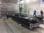 We put a 60 caddy on the dyno rollers but there wasn't a hole lot of demonstration using the car. But it's got two dyno rollers and the hole floor rotate to change the angle of the car against the wind. The rollers are in synch with the wind - so as you accelerate the wind increases to match.