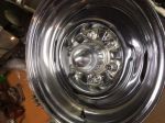 I got these chrome 15" wheels a couple years ago for my Apache project and wasn't sure what to do with them. Spider caps don't come in 6 bolt and expensive anyways, hub caps I liked were a bit pricey, and I wasn't sure what size of center caps to buy, as all of them seemed to be built for a smaller hub size.