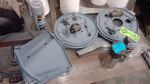 We really like the "one step" etch primer in the rattle can made by Dominion something something company. LOL I still can remember their whole name. It is pictured in the above picture in the upper left. Then, depending on what part it is we will use the cast iron colour or a semi black which we are now getting from Sherwin Williams. I am collecting up sandblasted parts to paint all at once in the booth with a quart of Nason etch primer. The rattle cans in the winter are so easy though.