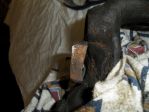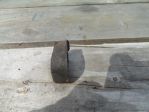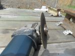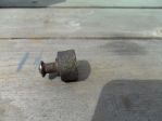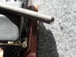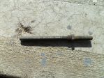 In order to shorten the top bolt (the same one used w/drum brakes where the springs anchor) I had to build this bench with vise and sections of RR track and a concrete block underneath. This will be my "Bangin'- Poundin'- Bench". This is the amount cut off the top bolt.
