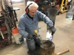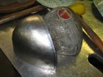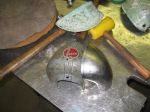 Jim came down today and learned a bit about shaping. There were no power machines or ewheel used on the piece in the pics. Just Jim tapping away. You can see it's ripply, but some more hand planishing and it can be quite good. Kinda cool for his first attempt.