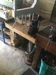 here's how I got the the shrinker / strecher too work , first I had a old set of petals (55 chevy) and then I had some tubing and mounted two the bench with pins and grease fittings . Then came the springs too work the levers up and down.