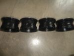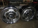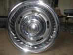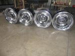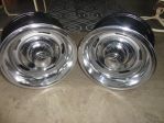Set of four Corvette Rally Wheels. Two 15"X8" and two 15"X7". All the wheels have been cleaned, sanded, painted and clear coated. Very nice factory center caps. Good driver quality rings. All the stainless has been polished. Nice set of wheels. $400.00 SOLD...