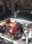 Motor and transmission are in place, mounts all made, oil pan was reshaped, drain plug relocated along with oil pump pickup tube, was waiting for a few components to show up to get the power steering adapted using the Mercedes pump on the Ford motor so had to wait for a secondary harmonic balancer add on pulley. Also had to source a 27 spline differential yoke to adapt to a standard Spicer ujoint from the Benz rubber rag joint. Luckily by the